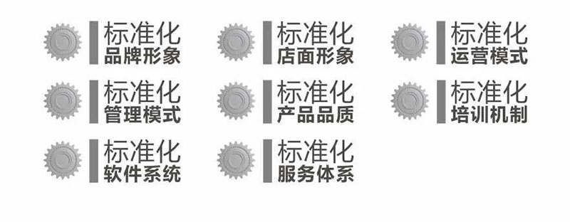 八大标准管理体系为店面运营提供坚实基础,全面凸显先进管理模式和大牌优势。